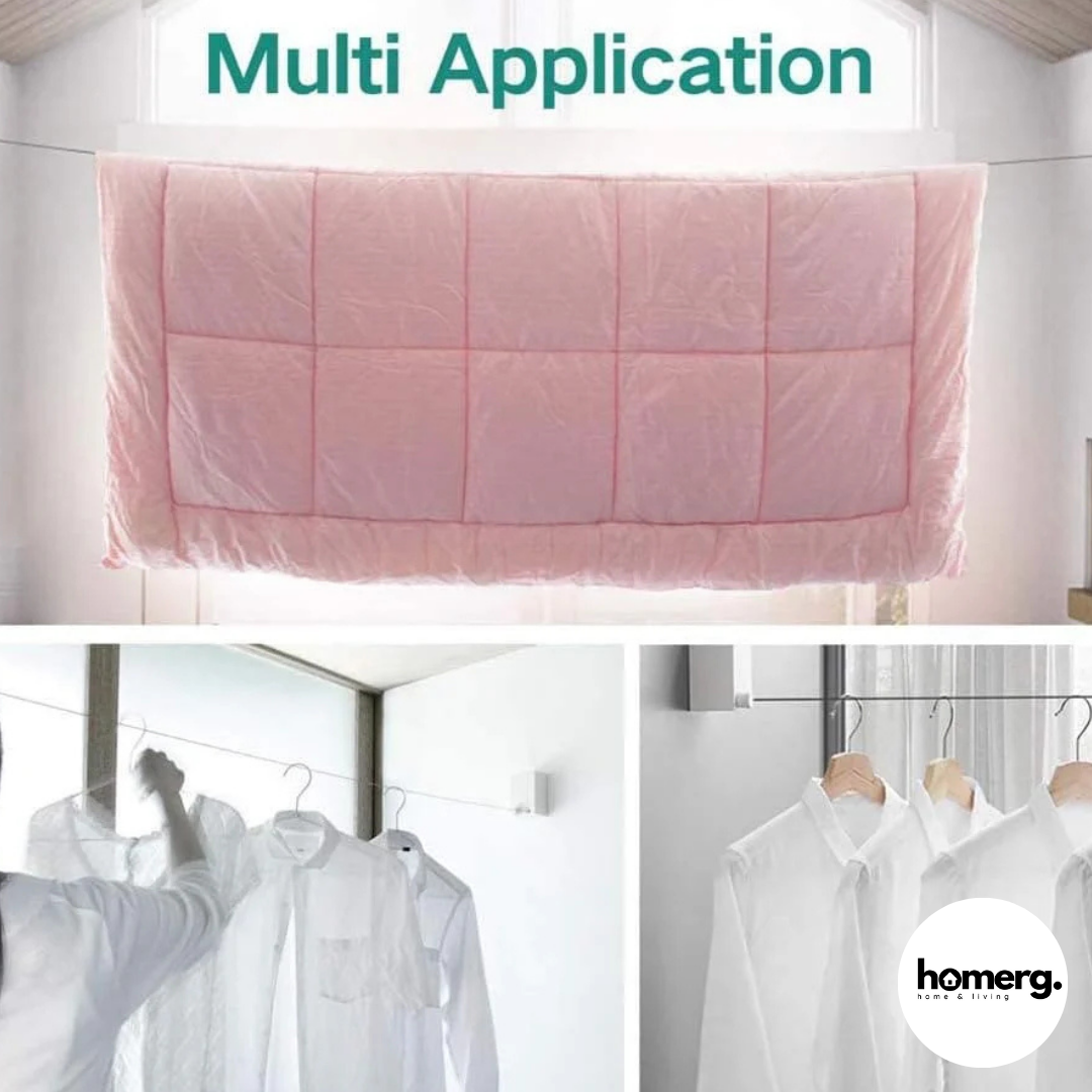 Retractable design is easy to use, space-saving and beautiful. You can hang swimsuits, underwear, shirts, towels, pants, socks, skirts, coats, quilts, etc., meeting a variety of clothes drying needs.